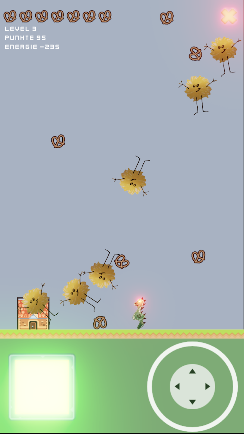 Mit Klick auf dem glühenden Button spuckt DRACHI Feuerkugeln.
