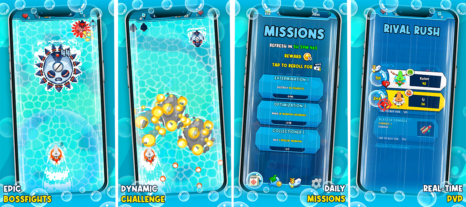 Discover the first sea shooter of it's kind and help the Atchon Squad protect the sea against the evil Fishbots!