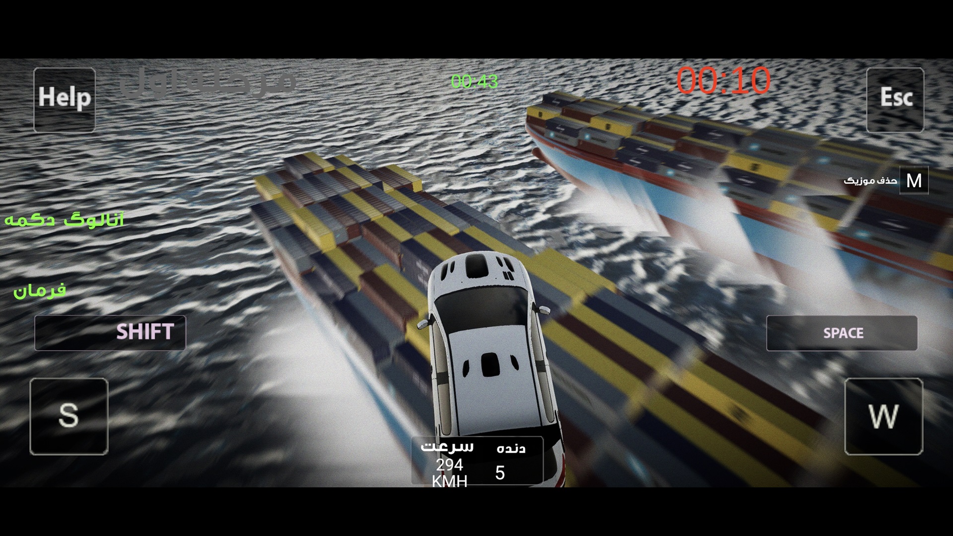 Well, in this game, you are the driver of a Pride Tuned, and apparently a missile was fired to hit the island you are in! The only way to escape is to jump on the cargo ship that is passing by the island before it gets hit! Are you ready to move the