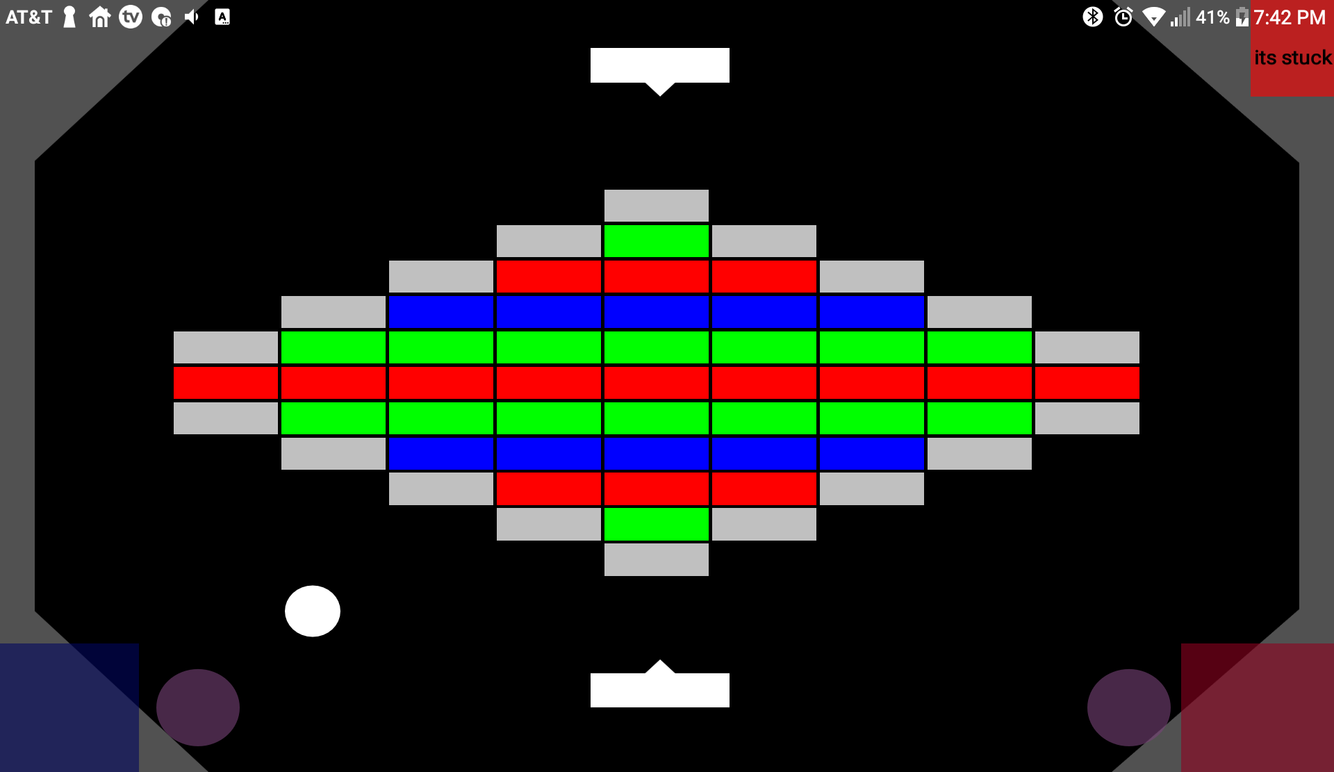 This a single or multiplayer game. Player uses the paddle to keep the ball in play collisions with the color rectangles clears the board and advances level. The gray rectangles clear with the projectile.