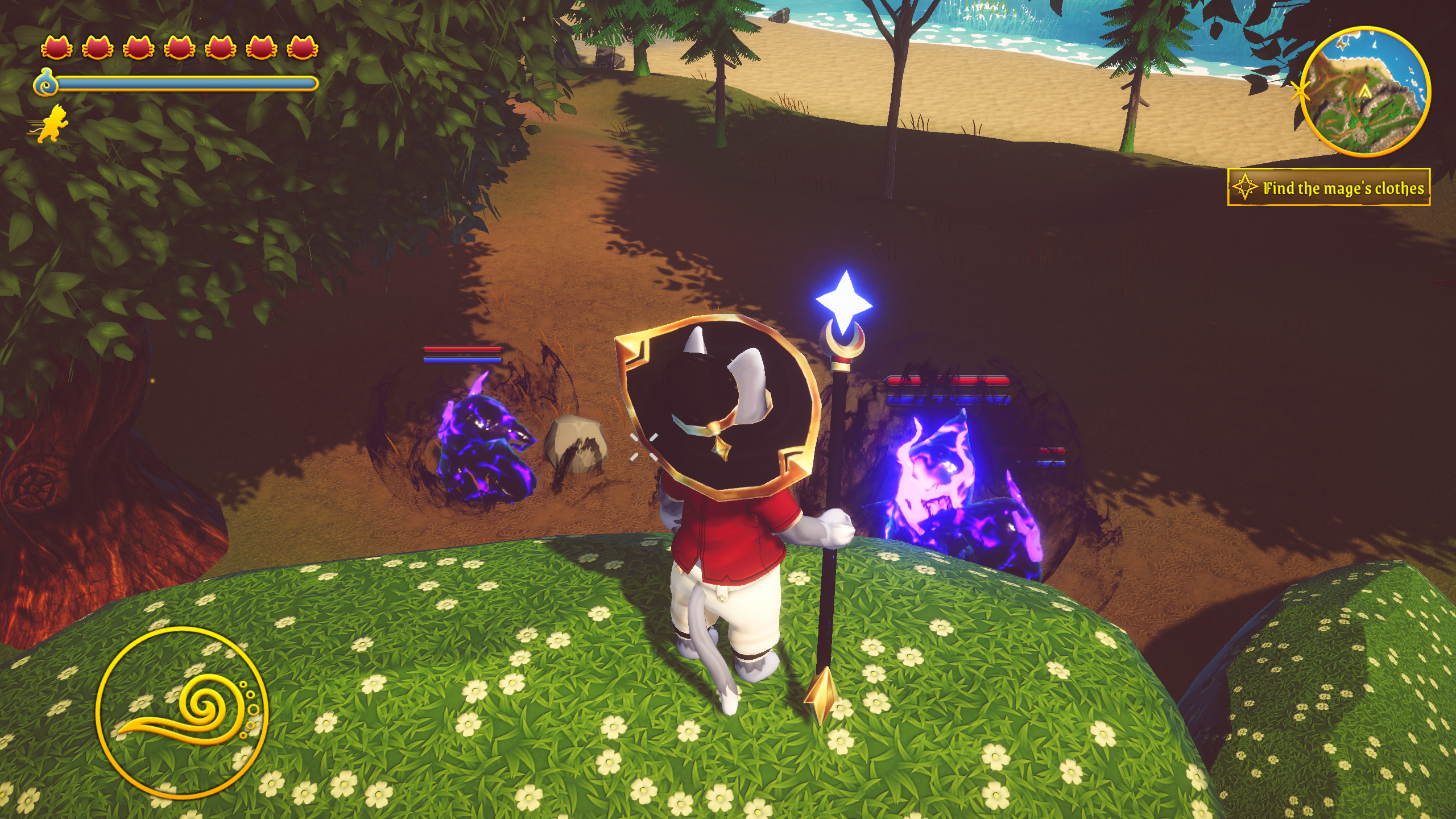 While exploring Dungeons, the player will go through puzzles and enemies to find the Grimoires of magic.