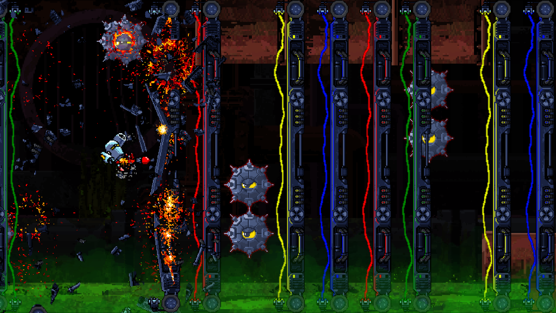 pixelBOT EXTREME! - the EXTREME! multitasking RUN and GUN with a colorful twist! Team up with pixelBOT, shoot up everything in your way and master an unique color-based destruction! Show what you've got and help the BOT to break out of the Forbidden Factory!