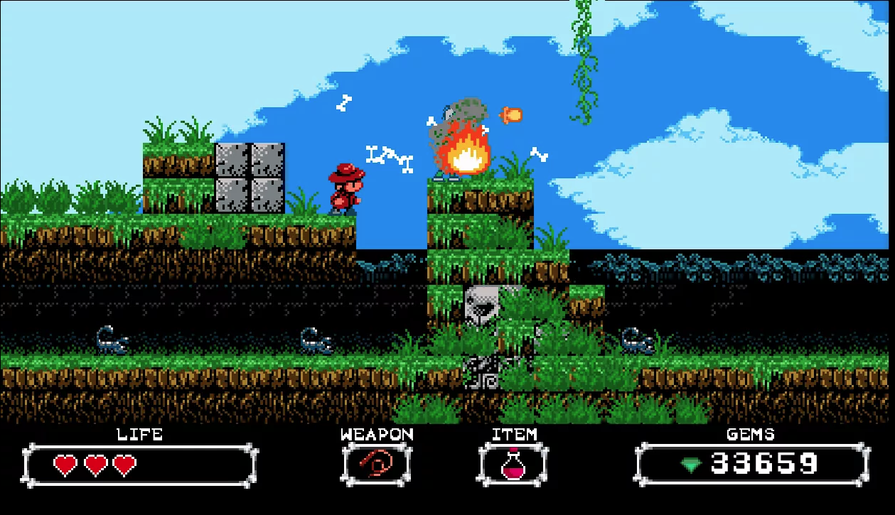 Sydney Hunter and the Curse of the Mayan is an 8-bit action adventure game featuring thirteen levels, and is influenced by other classic games including: The Castlevania series, the Mega Man series, and more. The game is about 95% done, and the final game design and programing should be completed within the next couple of months. We have done a lot of research on the Maya culture working on this game, and all of the gods/deities in the game are based on actual Maya gods. Many of the sprites and graphic work on the game is also inspired by actual Mayan architecture.