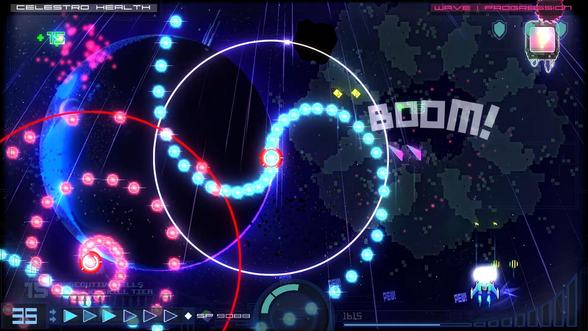ExtraGalactica is an indie shmup platformer in Early Access on Steam. Our infinite arcade mode has been release on PC/Mac and is awaiting port to iOS/Android in the coming weeks. With that released, we move on to our work for our campaign which bounces back and forth between our vertical space shooter gameplay and our 2D side scrolling platformer gameplay.